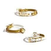 メッキをしていない温かみのある無垢の真鍮迷子札プレート付き。落ち着いた雰囲気のプレートです。
