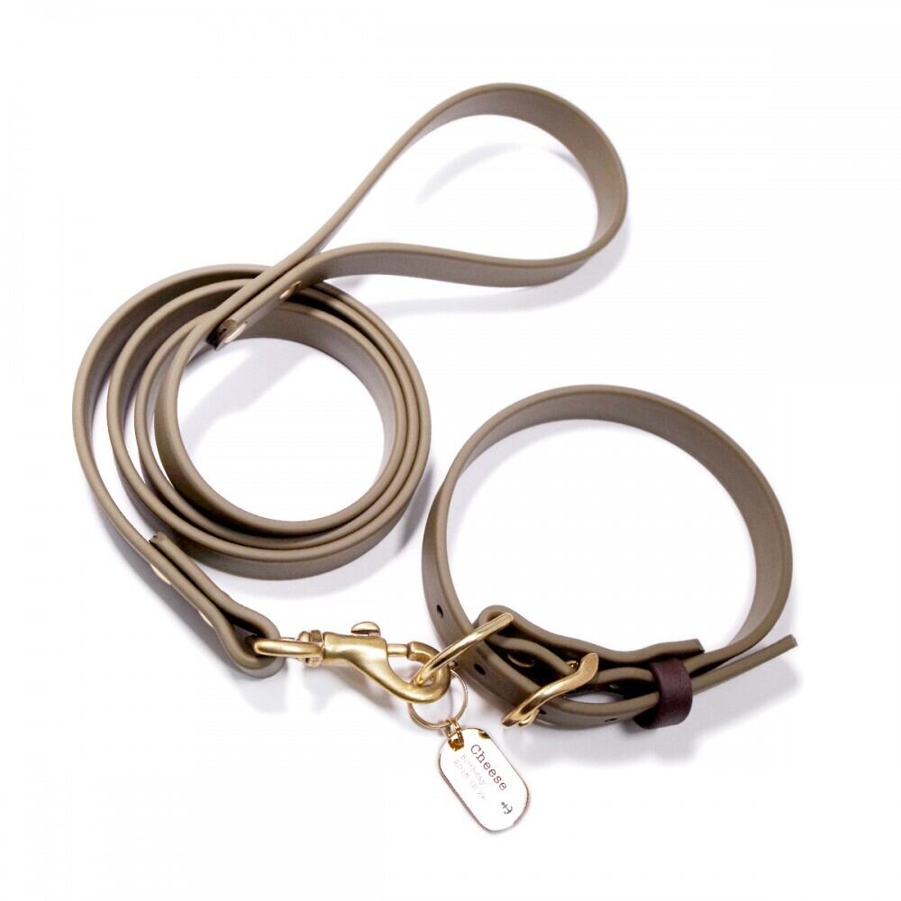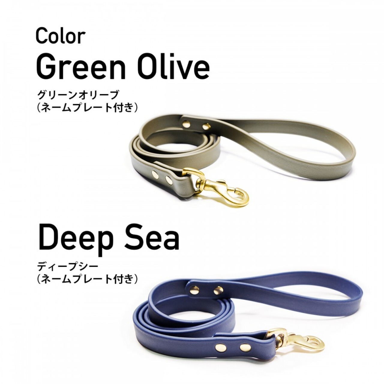 厚さ約4mmの極厚のシンプルな防水素材のリード。ネームプレート付き。