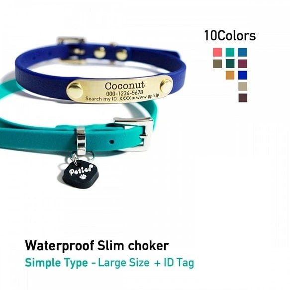 防水スリムチョーカー Biothane素材 IDプレート付き